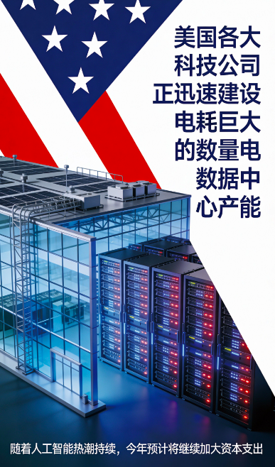 美国各大科技公司正迅速建设耗电量巨大的数据中心产能,随着人工智能热潮的持续,他们今年预计还将继续加大资本支出。这一趋势将直接带动全球电网设备需求的增长。