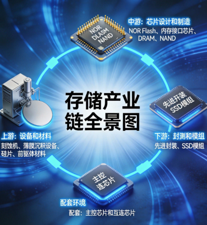 佰维存储2025年业绩的爆发式增长,是全球存储行业周期向上的缩影,其背后是AI大模型驱动的存储需求激增、头部厂商产能结构调整引发的供需失衡,以及库存周期见底共振的结果;这一趋势并非短期现象,叠加国产替代持续推进的长期逻辑,存储产业链上游设备材料、中游封测、下游模组环节将呈现差异化的投资价值,把握行业周期与技术迭代方向,是挖掘半导体存储领域投资机会的关键。