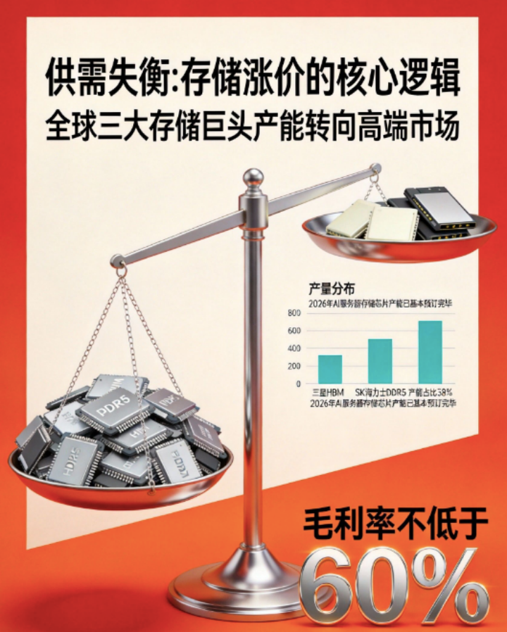 存储芯片涨价的核心原因可以总结为三个字:供需差。