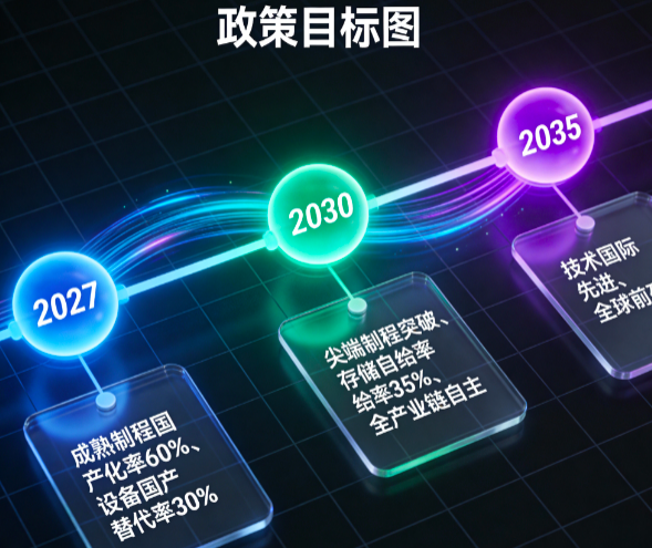 国家层面以“十五五”规划和新质生产力培育战略为核心,把半导体产业当成重点发展领域,明确了“自主可控、技术领先、产业链协作”的发展方向,还分了三个阶段定了发展目标: