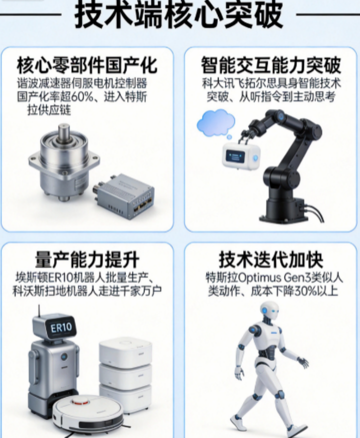 • 技术迭代加快:企业不断加大研发投入,特斯拉的Optimus Gen3机器人已经能做出类似人类的动作,核心零部件国产化率超过60%,成本下降了30%以上。