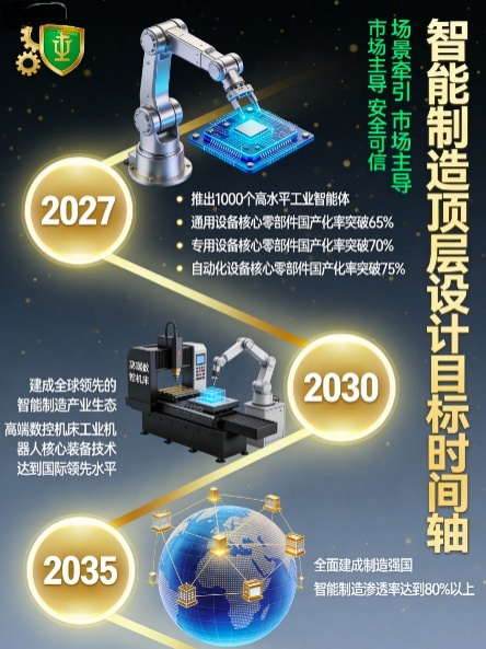 • 2030年:建成全球先进的智能制造产业生态,高端数控机床、工业机器人这些核心装备的技术达到国际先进水平;