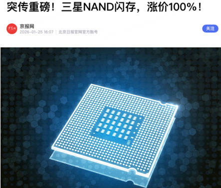 TOP1:AI需求驱动存储芯片紧缺,三星一季度NAND价格上调100%,涨价潮延续预期强烈