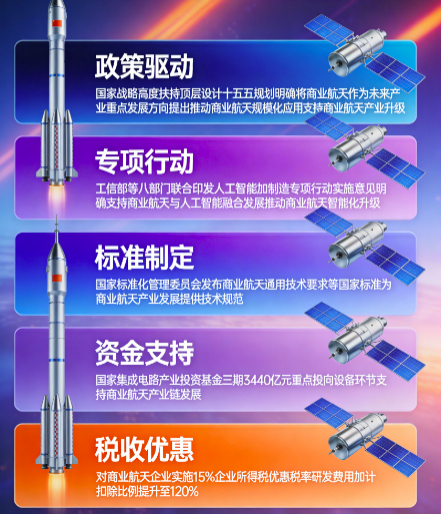 5. 税收优惠:对商业航天企业实施15%企业所得税优惠税率,研发费用加计扣除比例提升至120%。