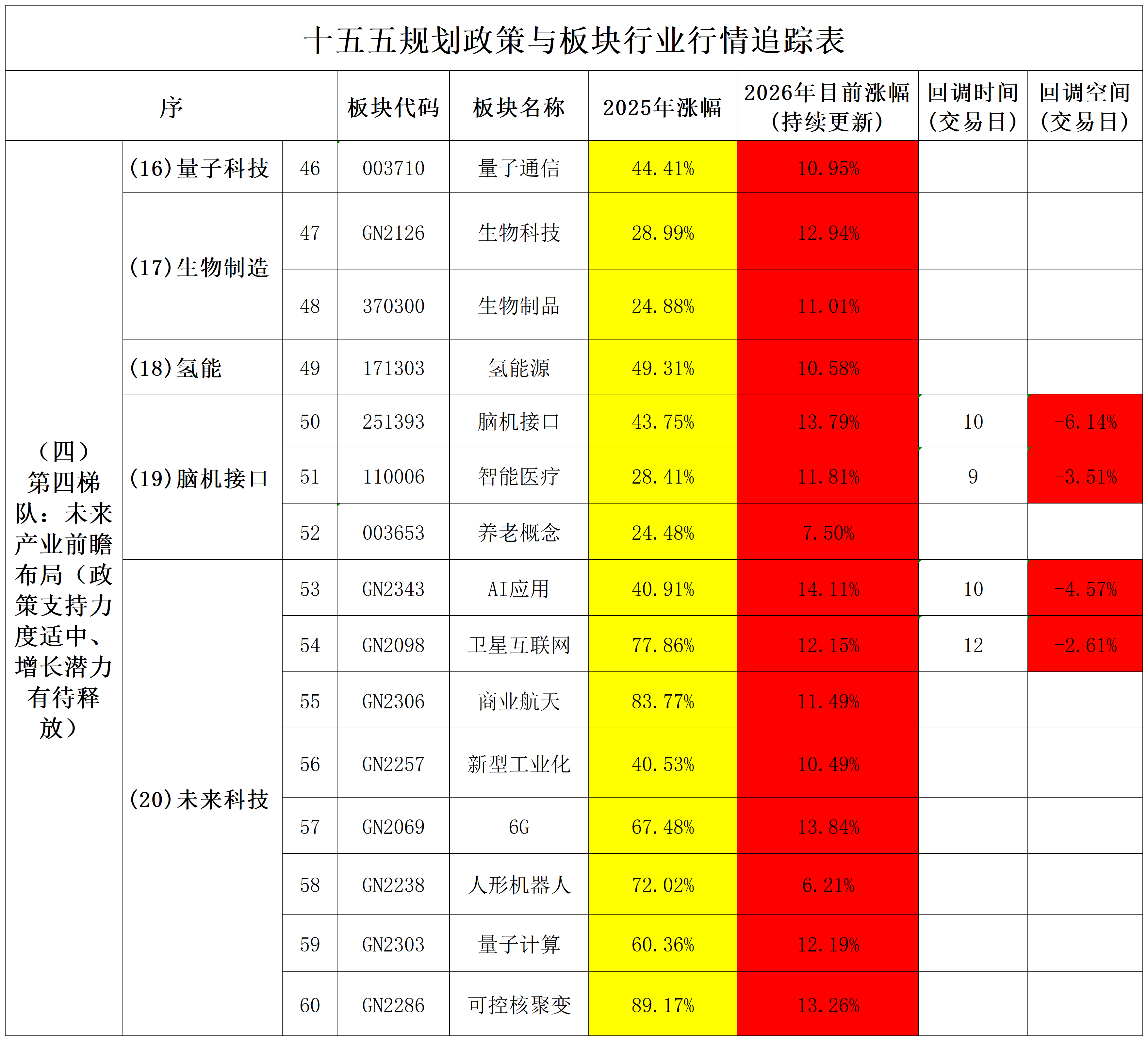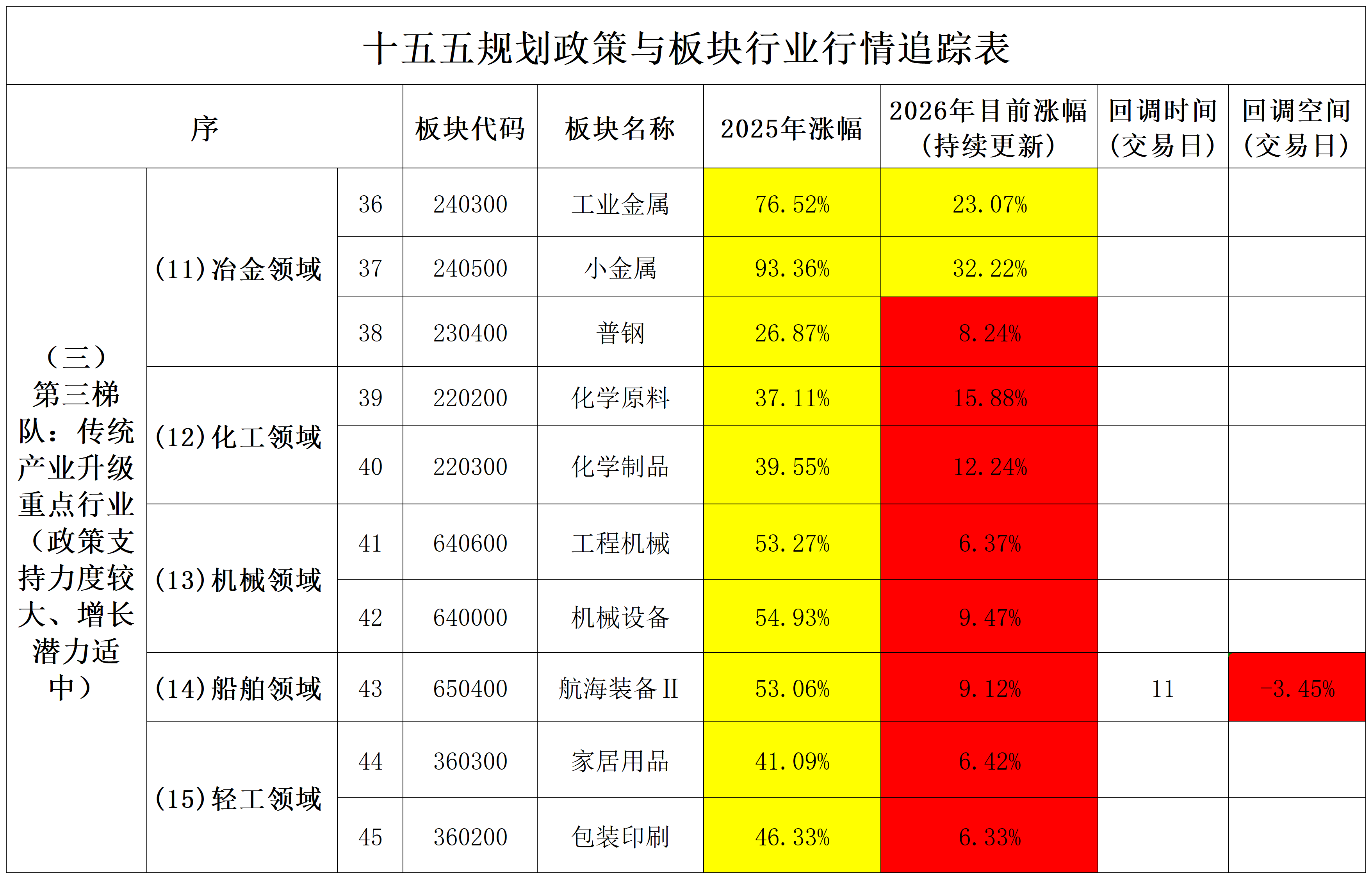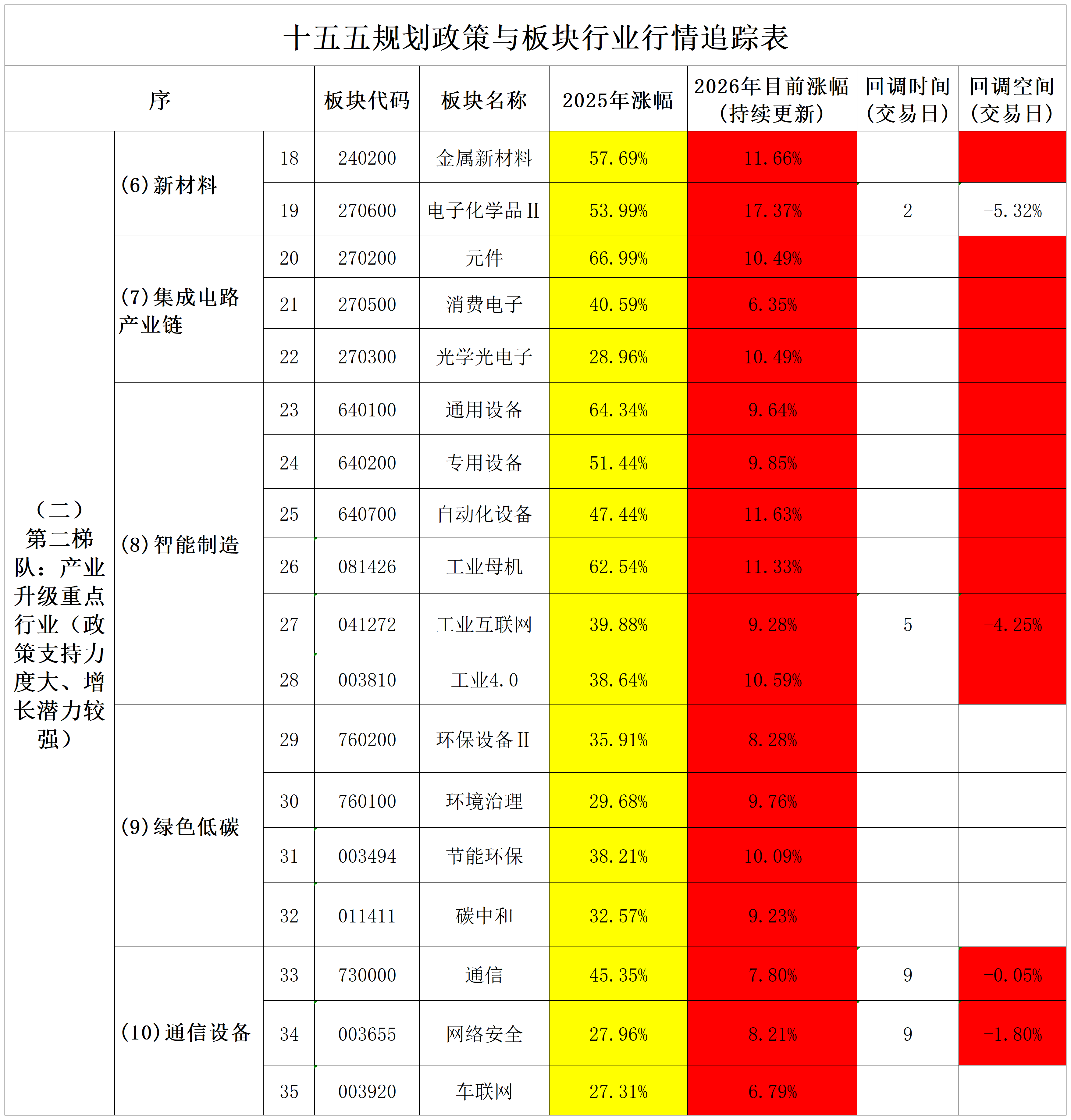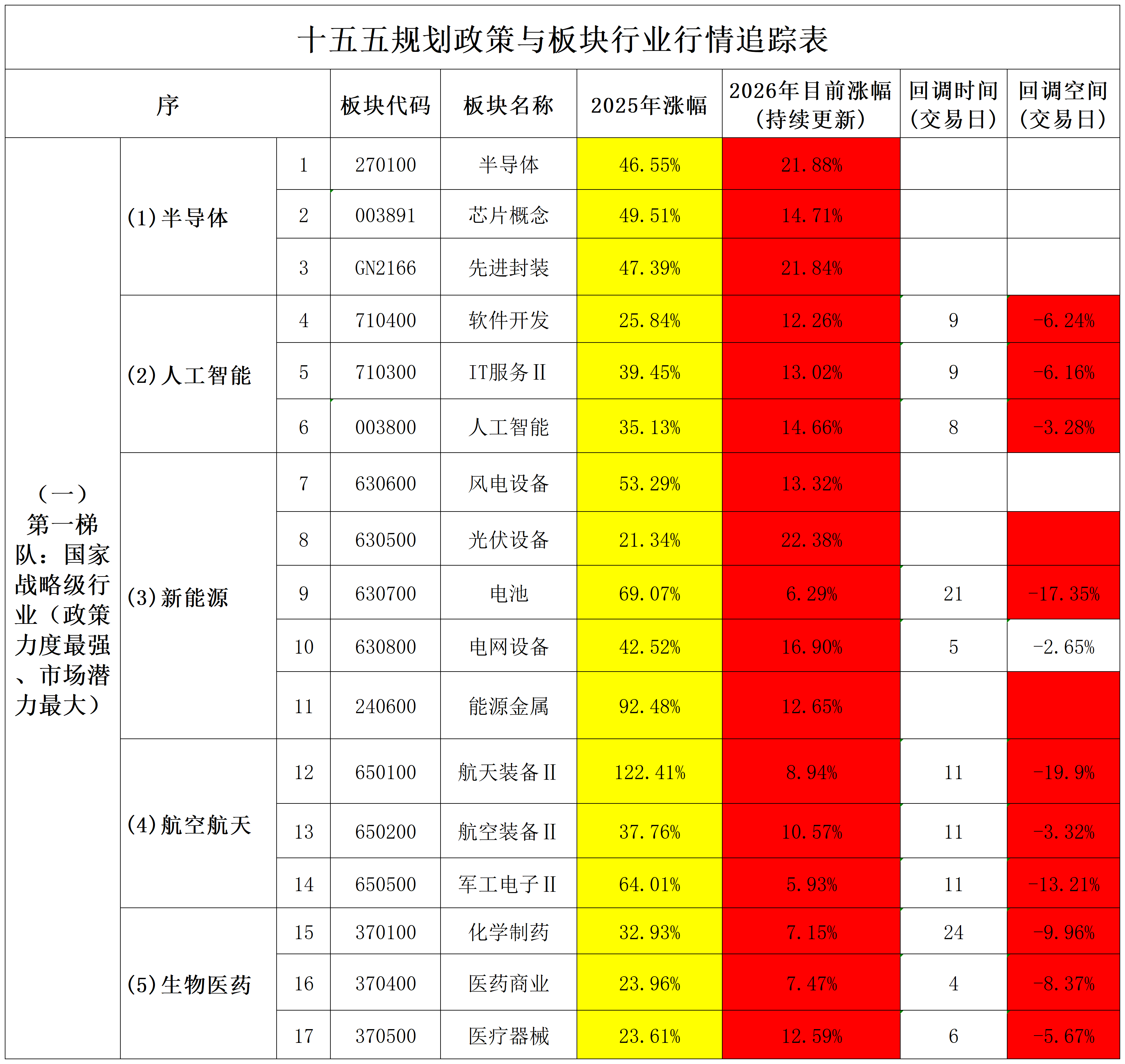 2026年1月27日十五五规划政策与板块行业行情追踪表