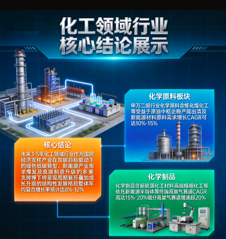 未来3-5年,化工领域行业作为国民经济支柱产业,在“双碳”目标驱动下的绿色低碳转型、新能源产业需求爆发还有高端制造升级的多重支撑下,会呈现“周期复苏叠加成长升级”的结构性发展格局,整体年均复合增长率预计能达到8%-12%。