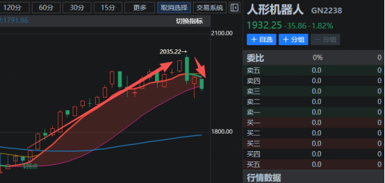 对于人形机器人的后市策略:人形机器人具有中长线的投资机会,耐等待短期调整企稳,密切跟踪大师短期趋势线翻红以及三周期共振的信号。