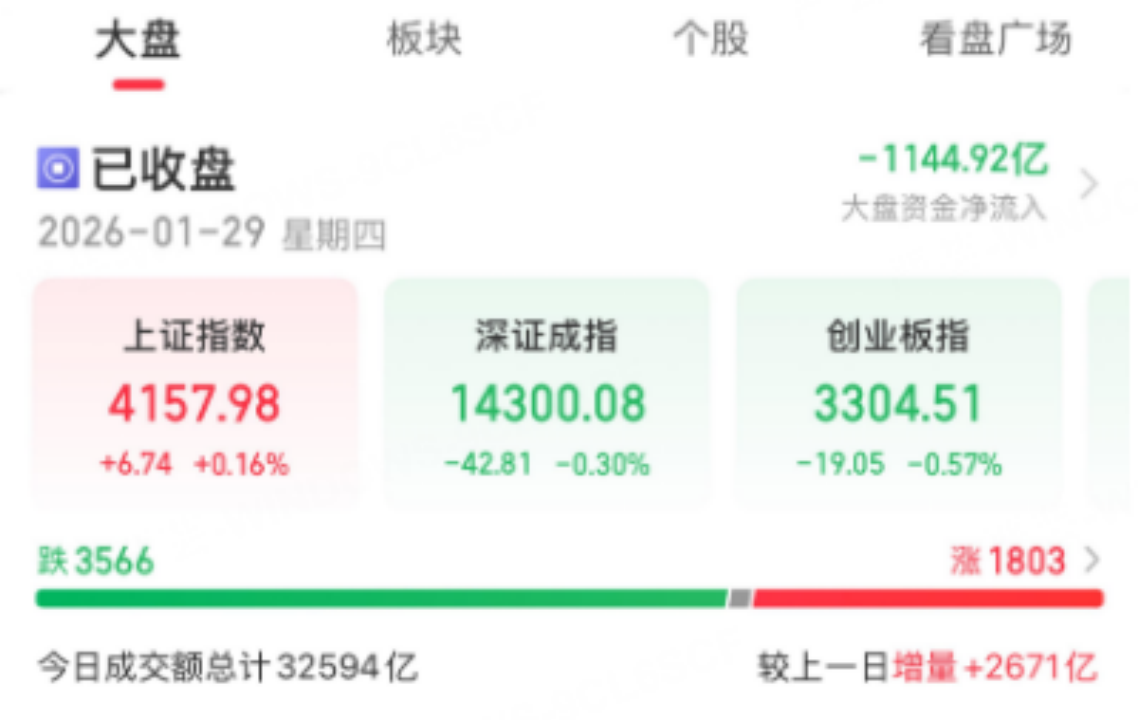 0129A股复盘:美联储议息会议落地,金价创历史新高,市场震荡整固