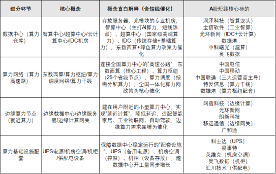 存放上游算力硬件、实现算力跨区域传输的物理底座,是政策(东数西算、全国一体化算力网)重点扶持端,业绩兑现性强。
