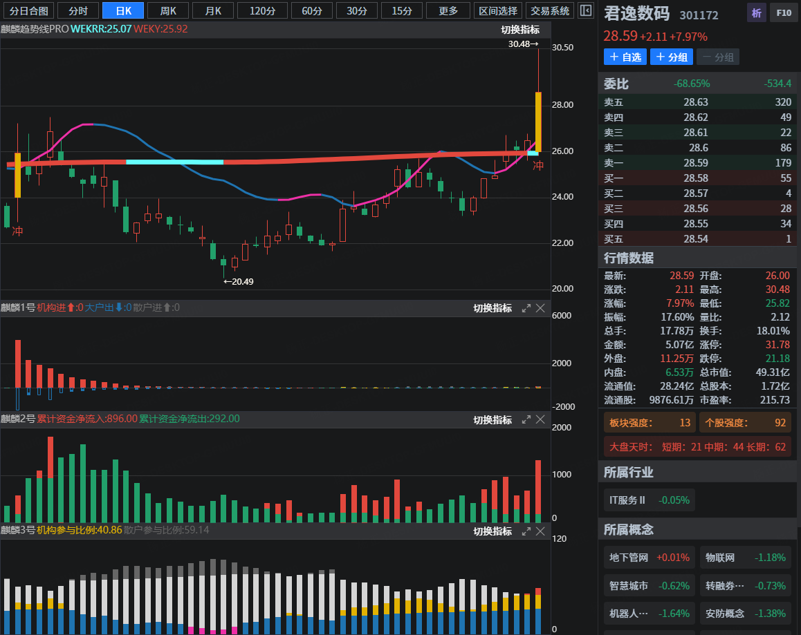 2、盘后策略内参需要进行盘中确认,算法要满足条件,股票也需要在【主图麒麟趋势线PRO+麒麟1号+2号+3号】体系之内,并符合战法规则!