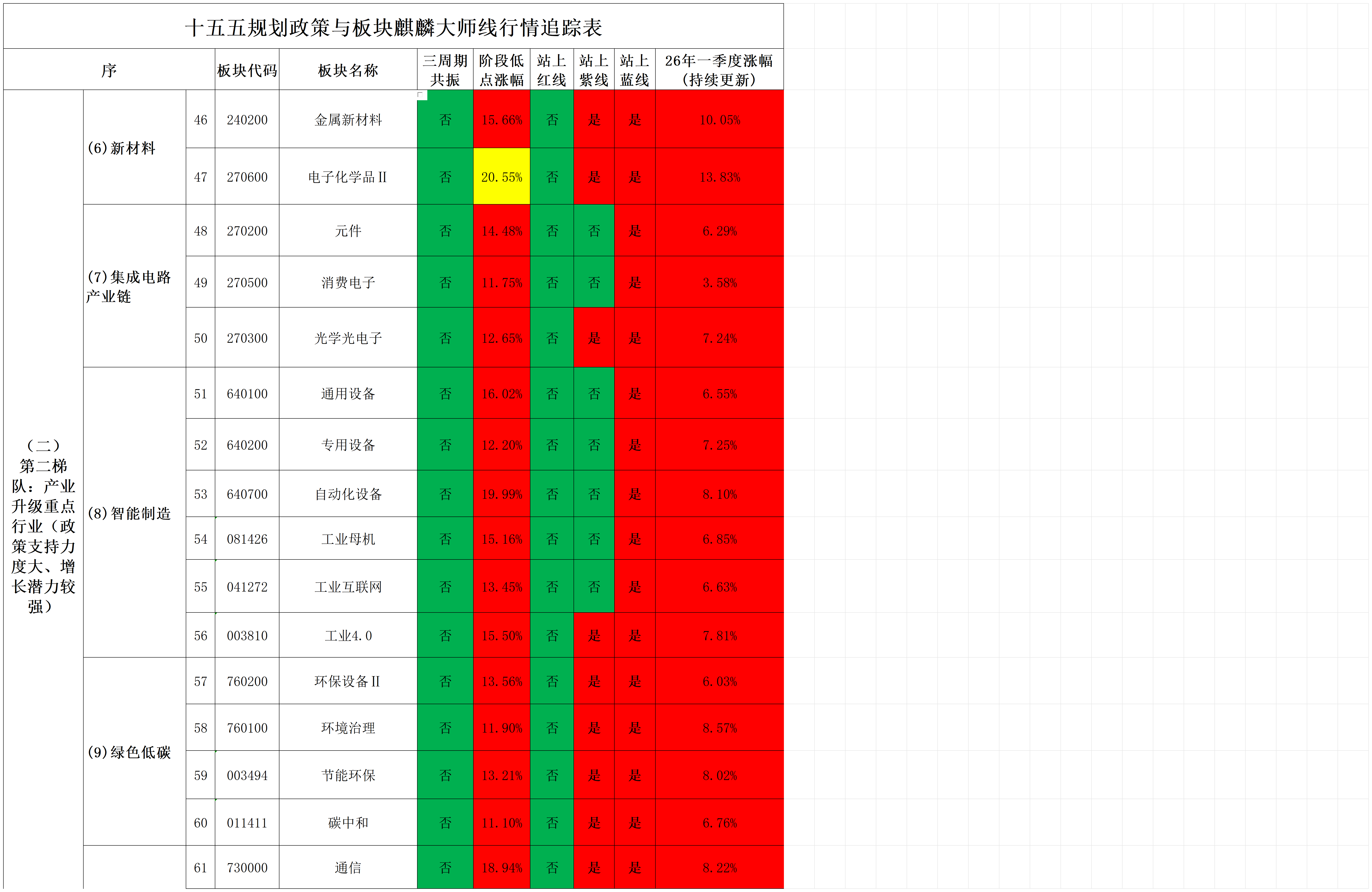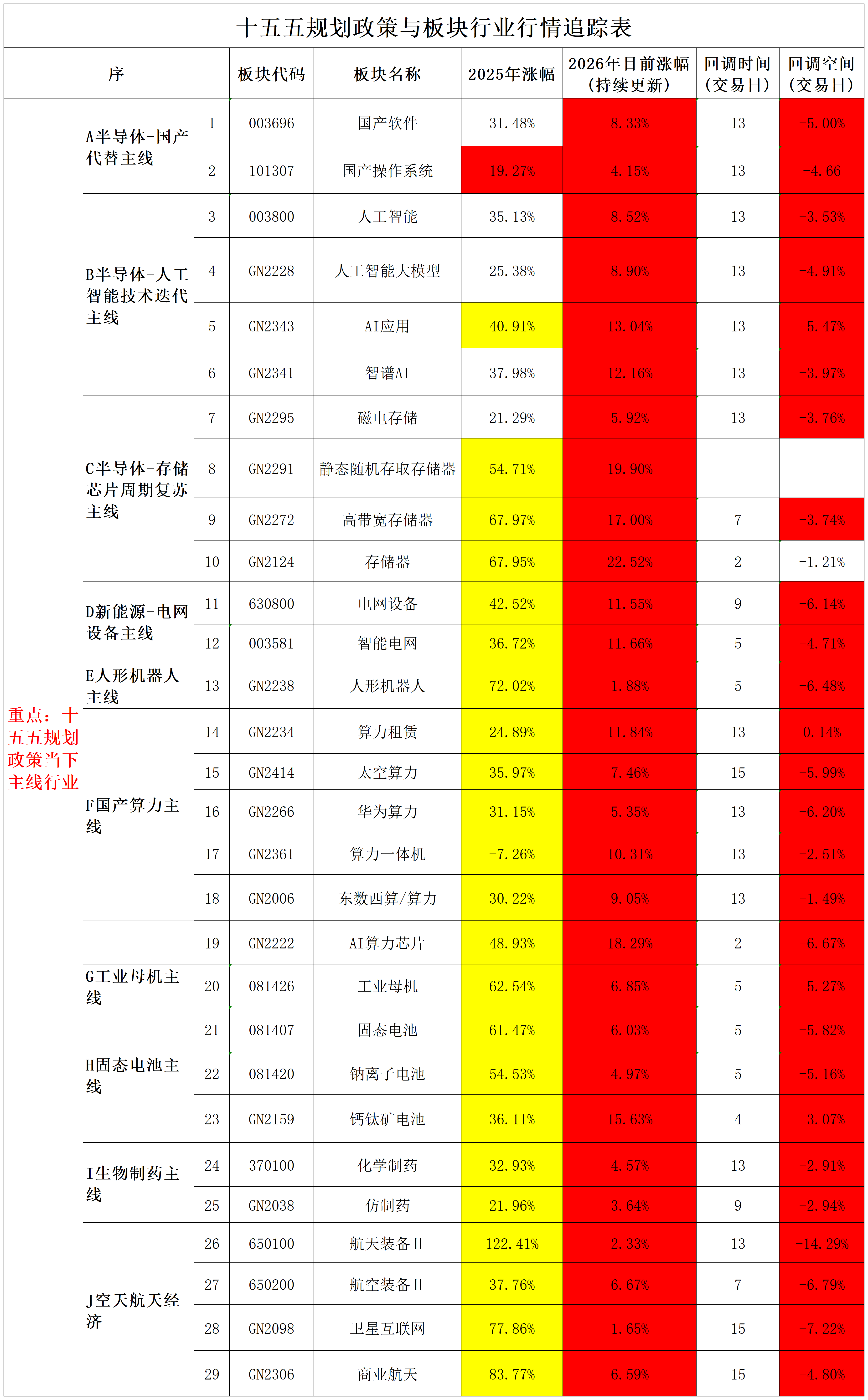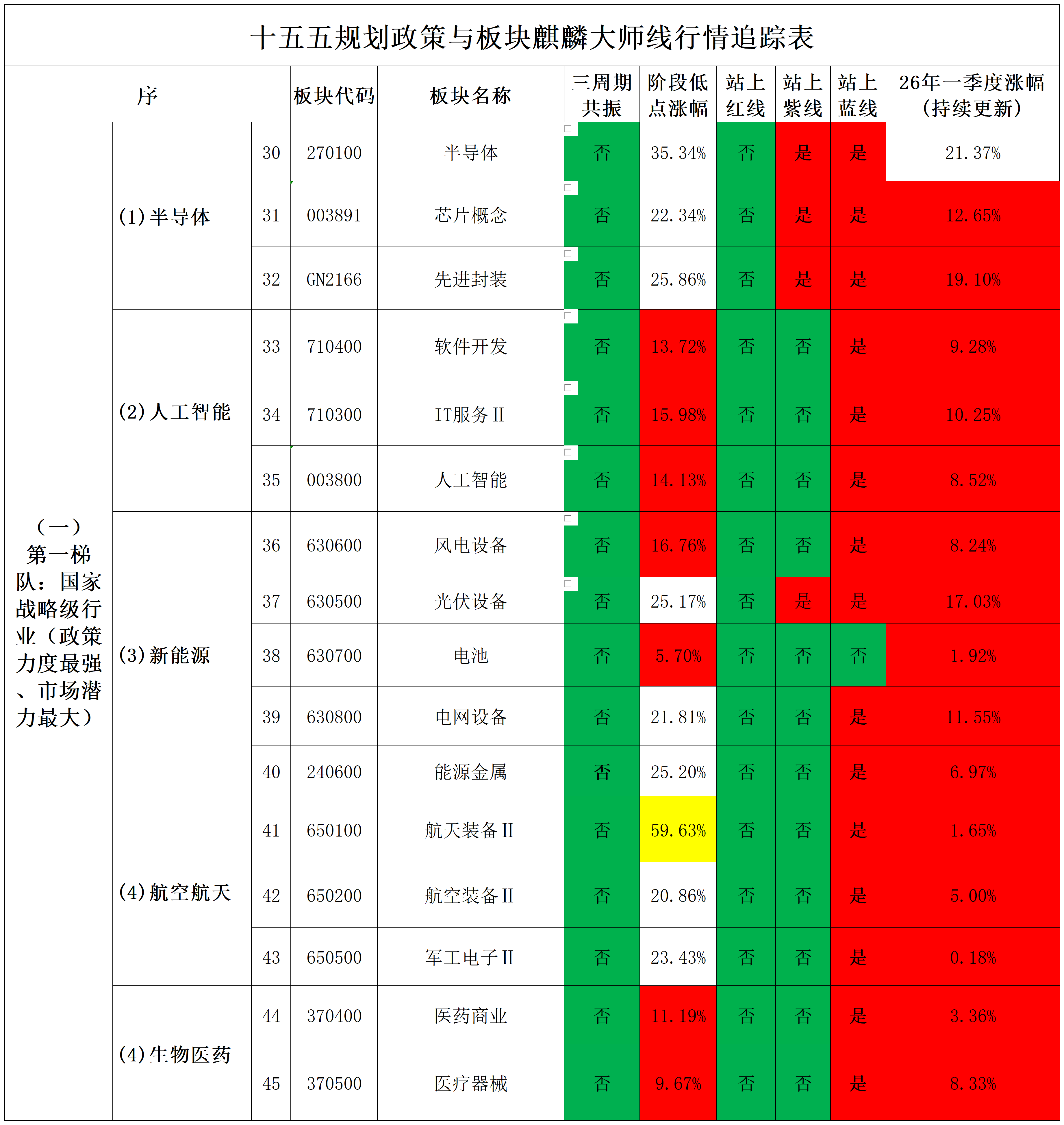 2026年1月30日十五五规划政策与板块行业行情追踪表