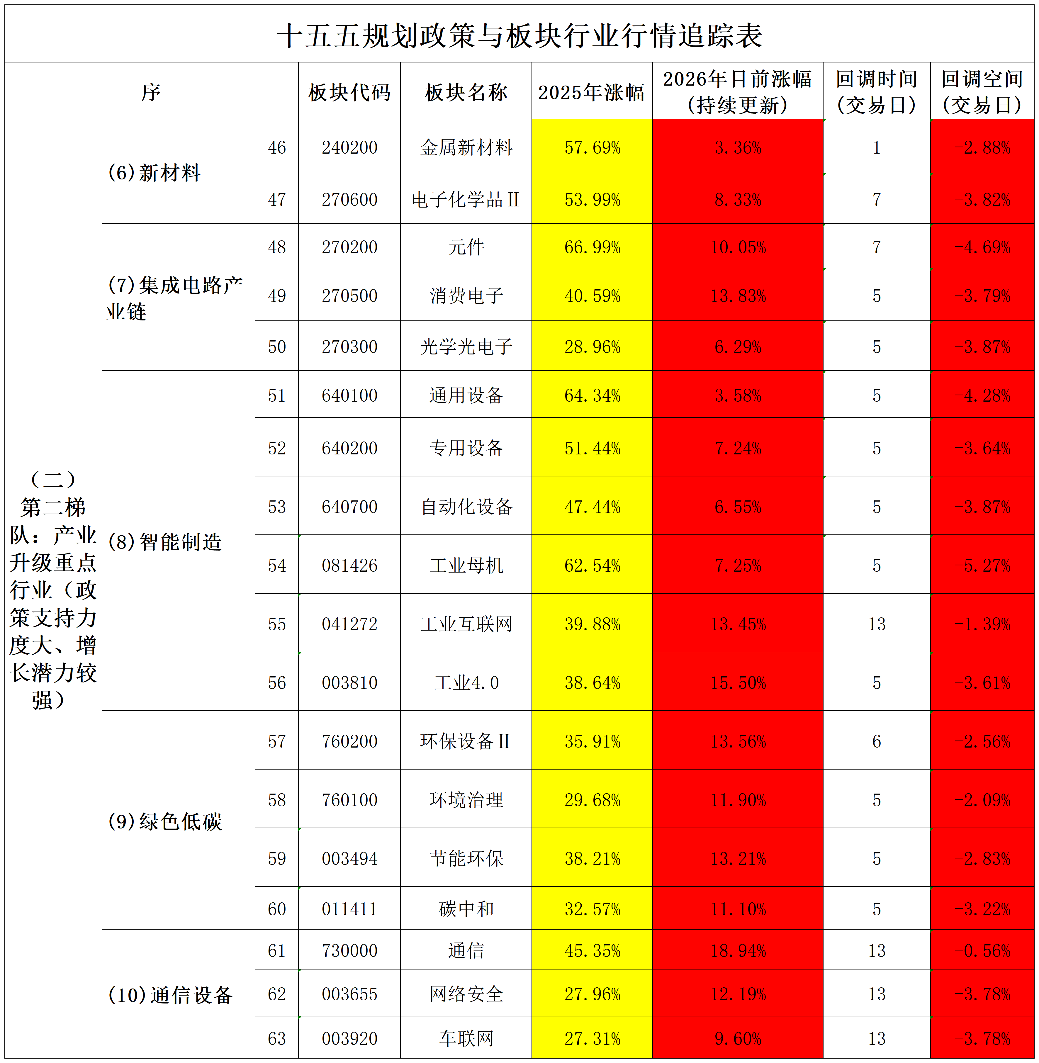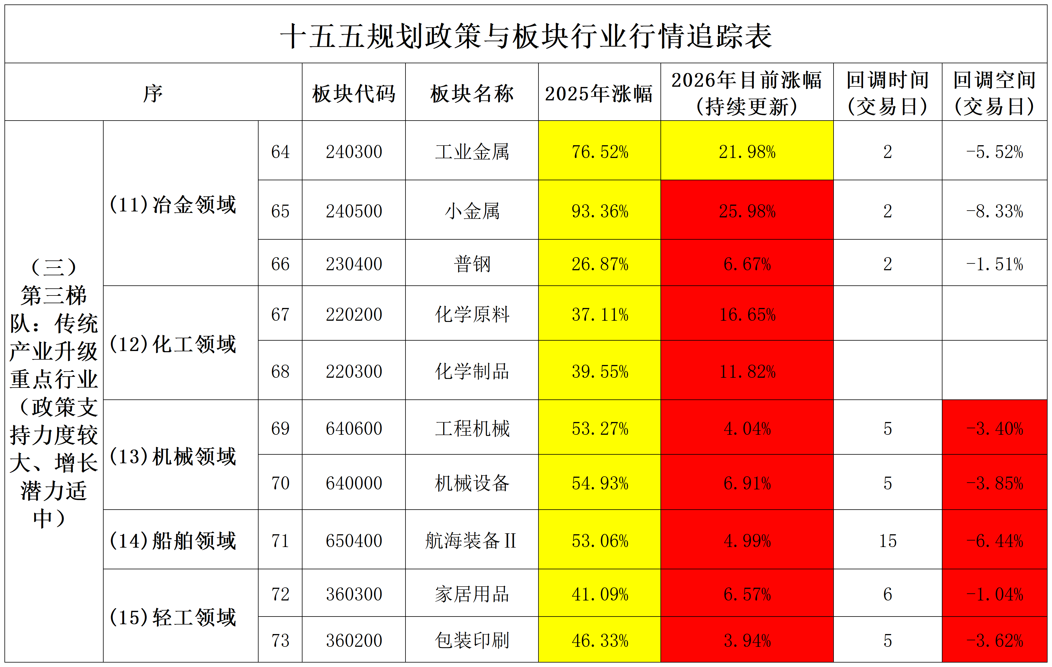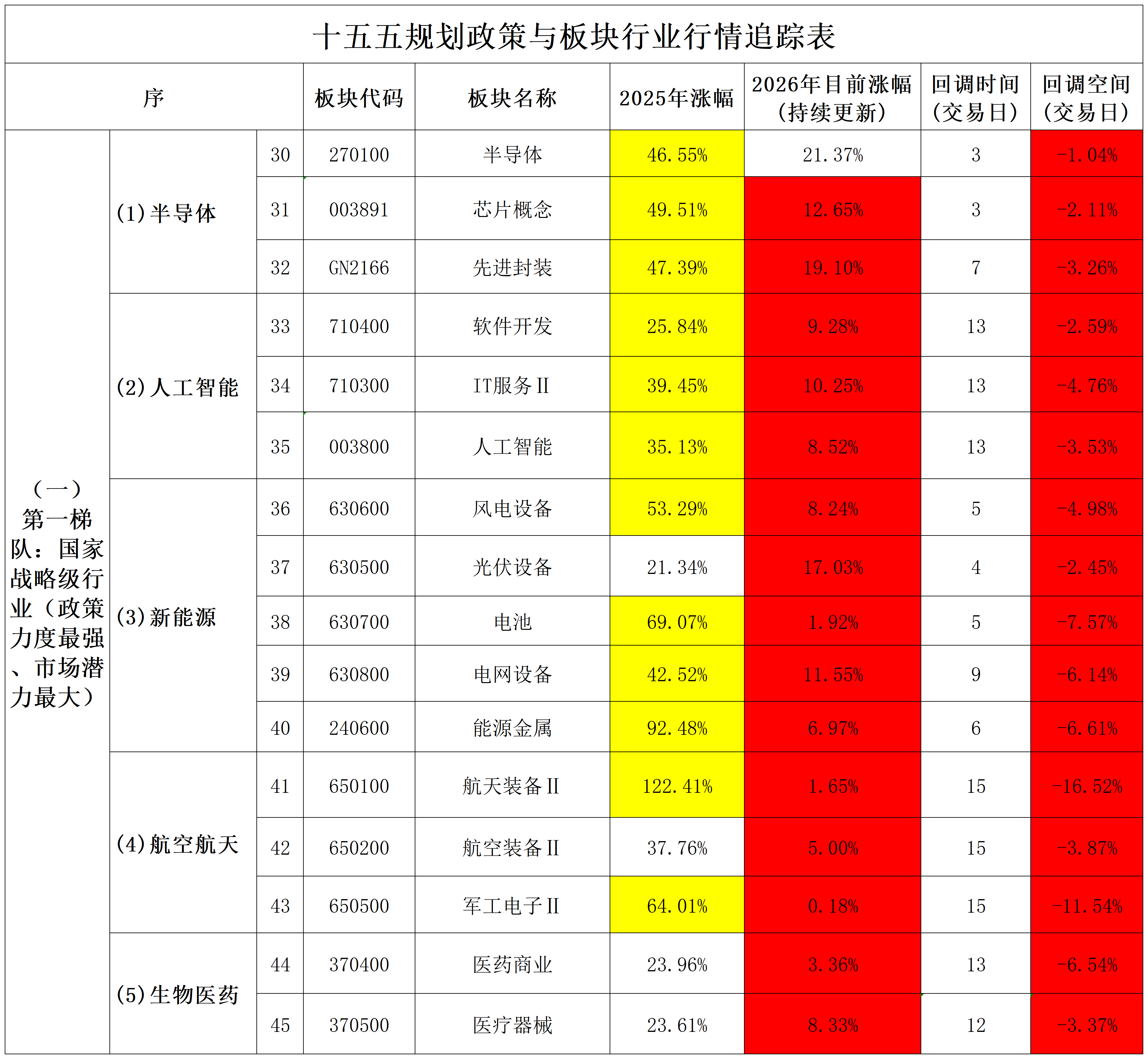 2026年2月1日十五五规划政策与板块行业行情追踪表