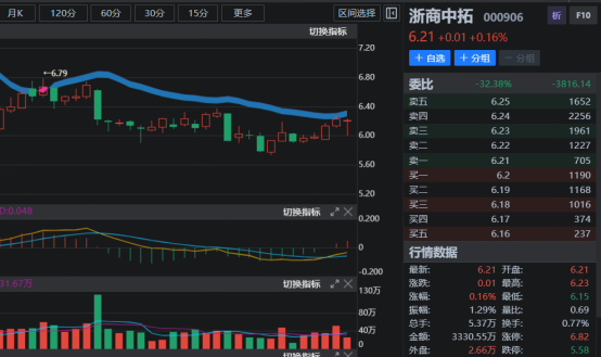 波动趋势案例回顾:浙商中拓(000906)。如关注浙商中拓参考关注价格区间位(6.02-6.20)。如果跟踪,建议关注仓位5%。后续注意风险控制,留意止损,由于跟踪位置可能不同,在跟踪之后下探6.5%统一止损。风险提示:大宗品价格剧烈波动;供应链业务操作风险。