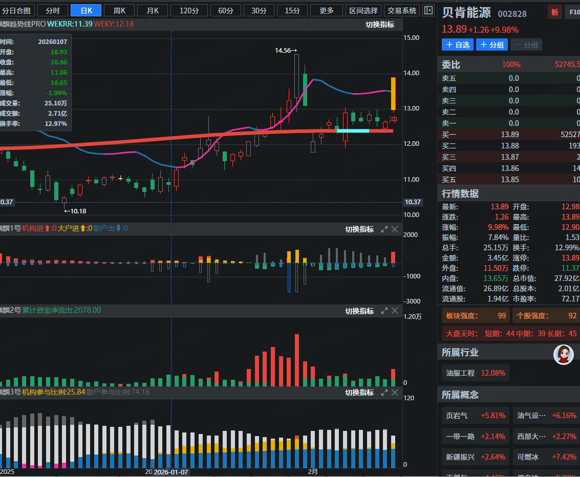 核心逻辑:国际油价上涨。马年春节假期期间,由于美伊冲突升级,国际原油价格出现较大幅度上涨 。公司作为油气钻井工程技术服务商,且业务涉及乌克兰、中东等敏感地区,具备“俄乌冲突概念”,因此被市场资金追捧 。