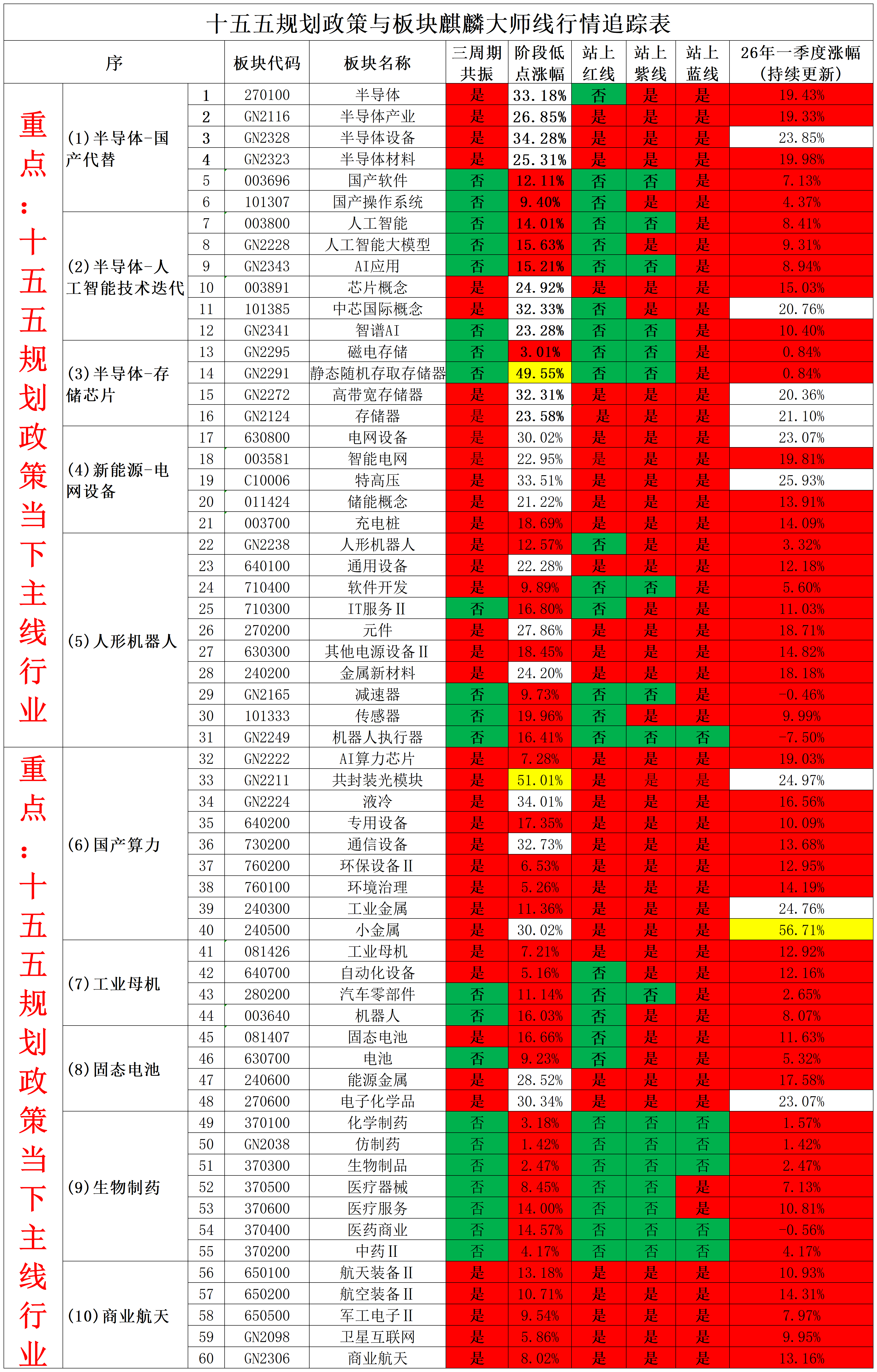 2026年3月2日十五五规划政策与板块麒麟大师线行情追踪表