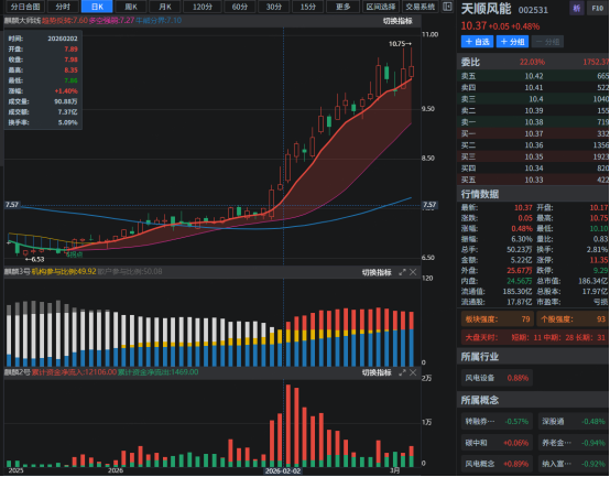 对于天顺风能002531,我们先根据Ai量化五维共振体系技术对近期走势做一个分析: