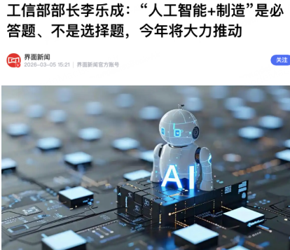 工信部明确表态,“人工智能+制造”是必答题,不是选择题,今年将大力推动该项工作落地。要求制造业各行各业全面拥抱人工智能,既要深度挖掘高价值应用场景、培育一批高水平典型应用,也要打造一批特色智能体;通过“造场景”激发新兴产业与未来产业创新活力,推动人工智能与制造业全领域、全链条深度融合,助力新型工业化建设与新质生产力培育。