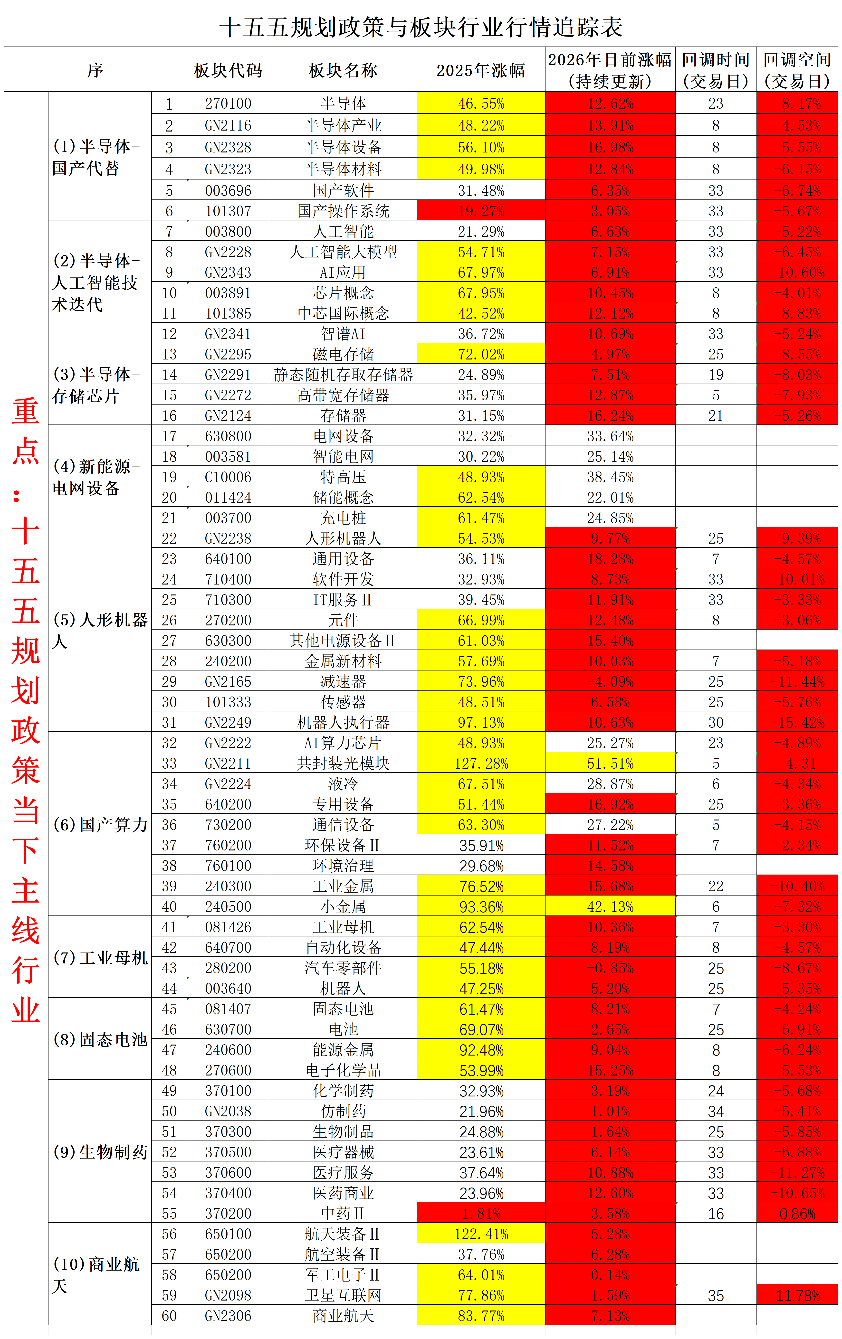 2026年3月9日十五五规划政策与板块行业行情追踪表