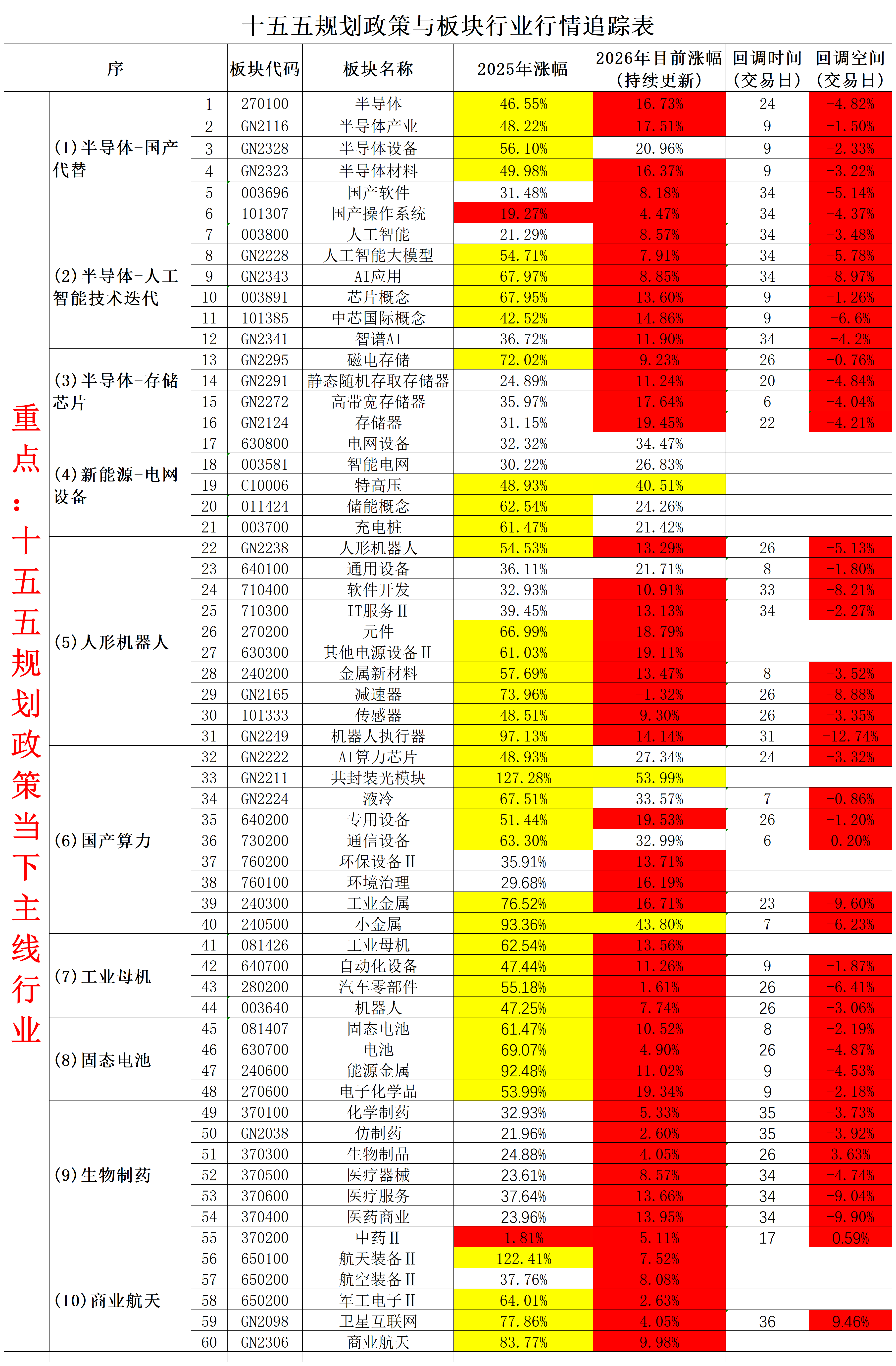 2026年3月10日十五五规划政策与板块行业行情追踪表