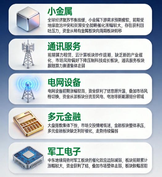 6. 科技题材退潮风险:算力、云计算等科技板块若持续走弱,将进一步拖累市场情绪,加剧个股普跌格局。