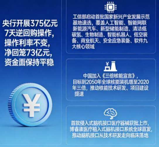 1、央行开展375亿元7天期逆回购操作,公开市场小幅净回笼