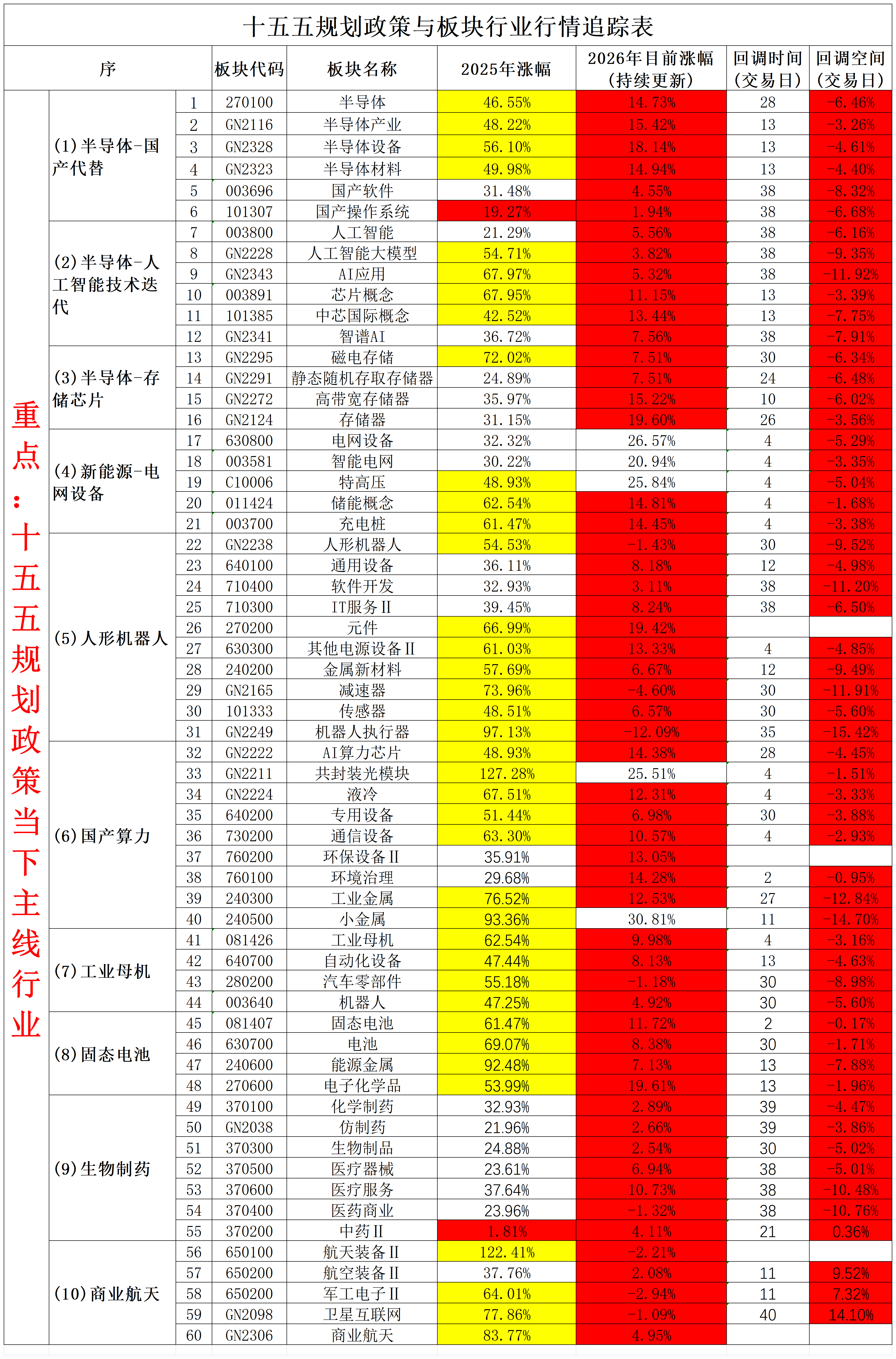 2026年3月16日十五五规划政策与板块行业行情追踪表