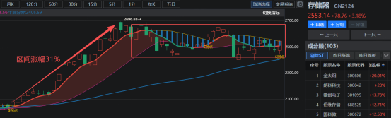 从麒麟大师线分析来看,【存储器】(存储芯片)板块在上次三周期共振后走出了一波强势的主升行情,区间涨幅高达31%,随后进入高位区间震荡调整,调整了32个交易日,最大调整幅度近11%,目前反弹到2553.14。