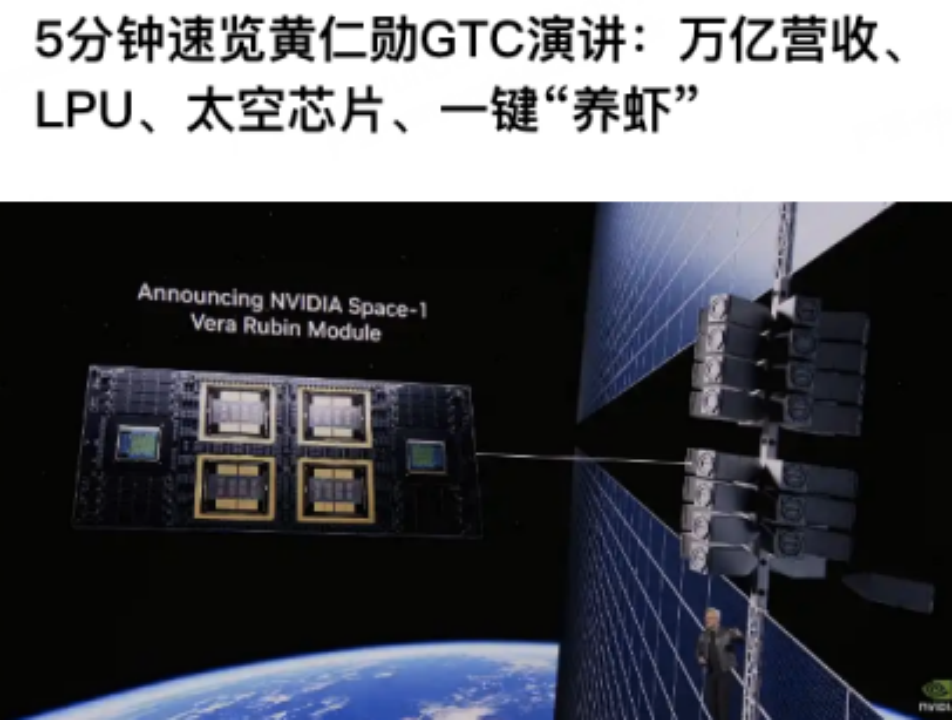 同时推出Space-1 Vera Rubin模块,将AI计算能力部署至卫星与轨道数据中心;发布NemoClaw智能体基础设施,安全养虾;此外,英伟达宣布参与6G创新,推动6G与AI深度融合。
