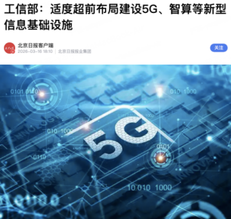 TOP1:工信部:适度超前布局建设5G、智算等新型信息基础设施