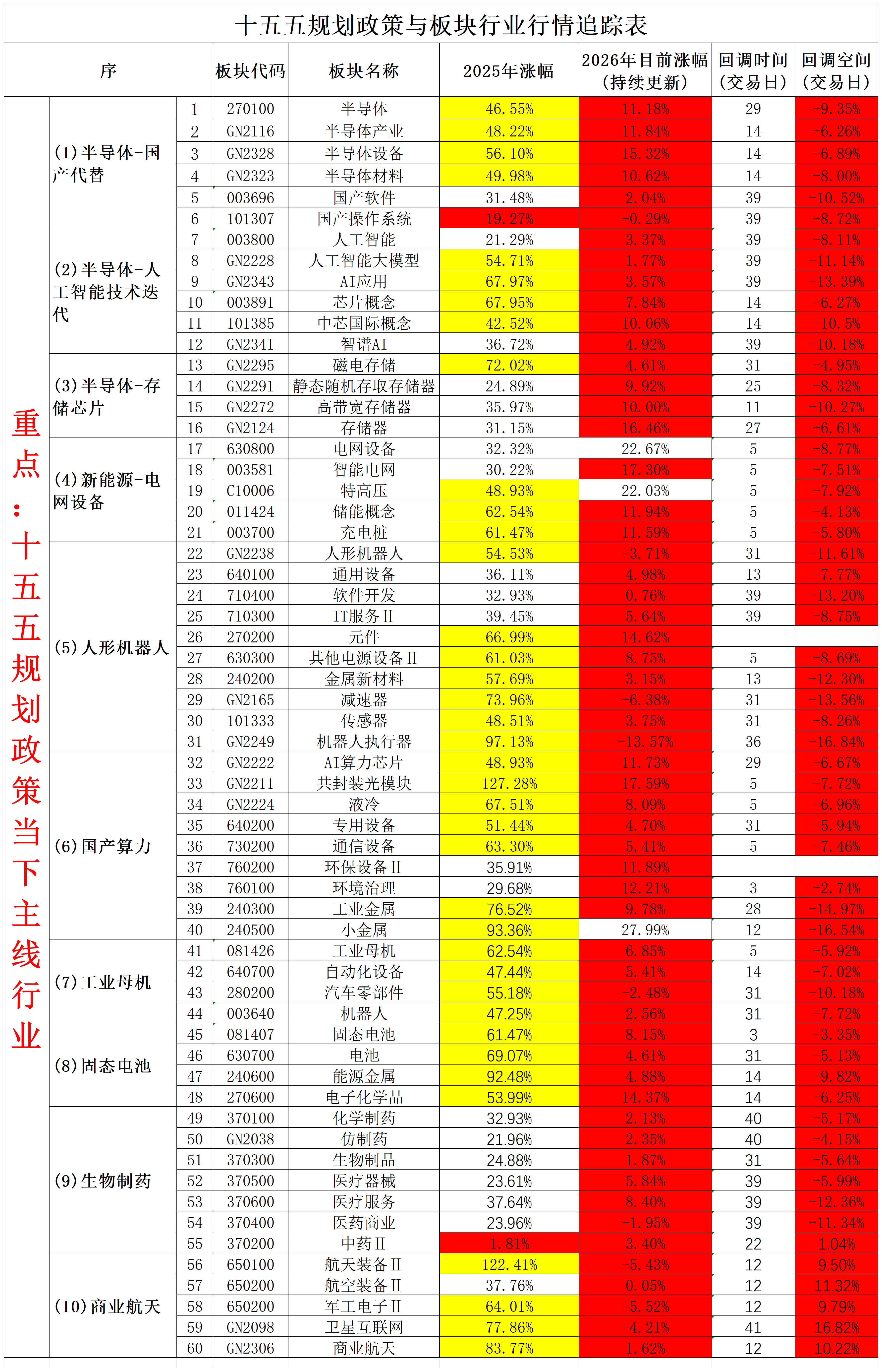 2026年3月17日十五五规划政策与板块行业行情追踪表