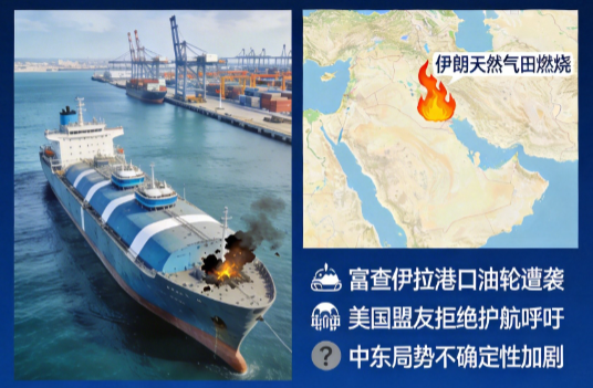 此次油价暴涨源于中东地缘局势的进一步升级:一是伊朗点燃一处大型天然气田,加剧了全球能源供应的紧张预期;二是,一艘油轮在阿联酋主要石油港口富查伊拉附近抛锚时遭到“不明物体”袭击,该港口作为绕开霍尔木兹海峡的重要石油出口通道,此前已多次遭伊朗袭击;此外,多位美国盟友拒绝了特朗普派遣军舰护航霍尔木兹海峡船只的呼吁,美方与盟友的分歧进一步加大了中东地缘局势的不确定性,全球能源供应链的风险持续攀升。