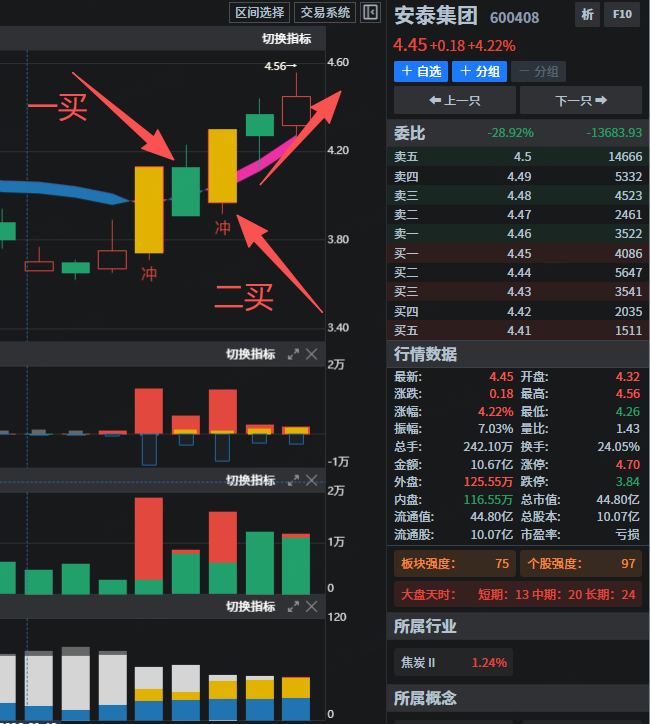 咱们做交易,卖不卖是有明确标准的,不是凭感觉,咱们直接看安泰集团的麒麟趋势图就明白了。