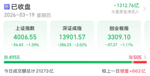 3月19日A股复盘:指数集体下挫,沪指险守4000点,能源板块逆势走强
