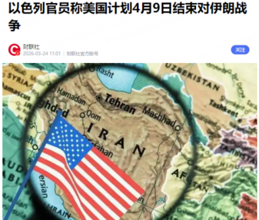 据报道,一名以色列官员透露,美国已将4月9日设定为结束对伊朗冲突的目标日期,伊美会谈预计本周晚些时候在巴基斯坦举行。美国总统特朗普表示,双方已就结束战争方案会谈两天,并撤销了此前要求打击伊朗发电厂的48小时最后通牒,但伊朗方面否认进行过任何谈判,地缘局势仍存不确定性。