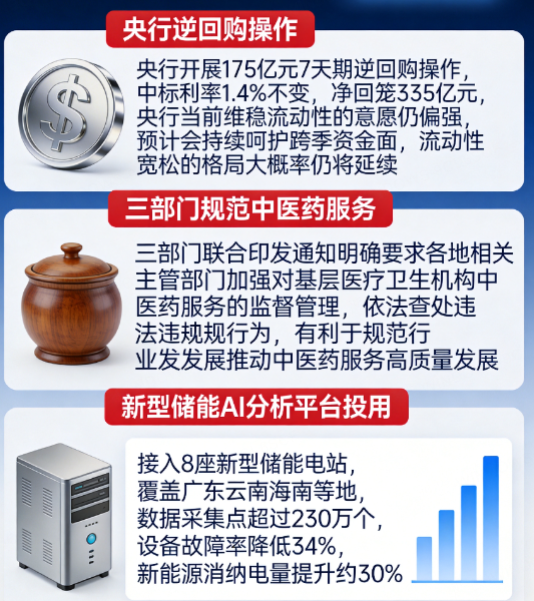 1. 环保设备:我国自主研发的首个新型储能人工智能数据分析平台正式投用,经过一年试运行,8座电站的设备故障率降低34%,新能源消纳电量提升约30%,系统调节能力显著增强。新型储能AI平台的投用标志着"储能+AI"融合应用取得重大突破,环保设备板块受益于新型储能发展和技术进步催化走强。