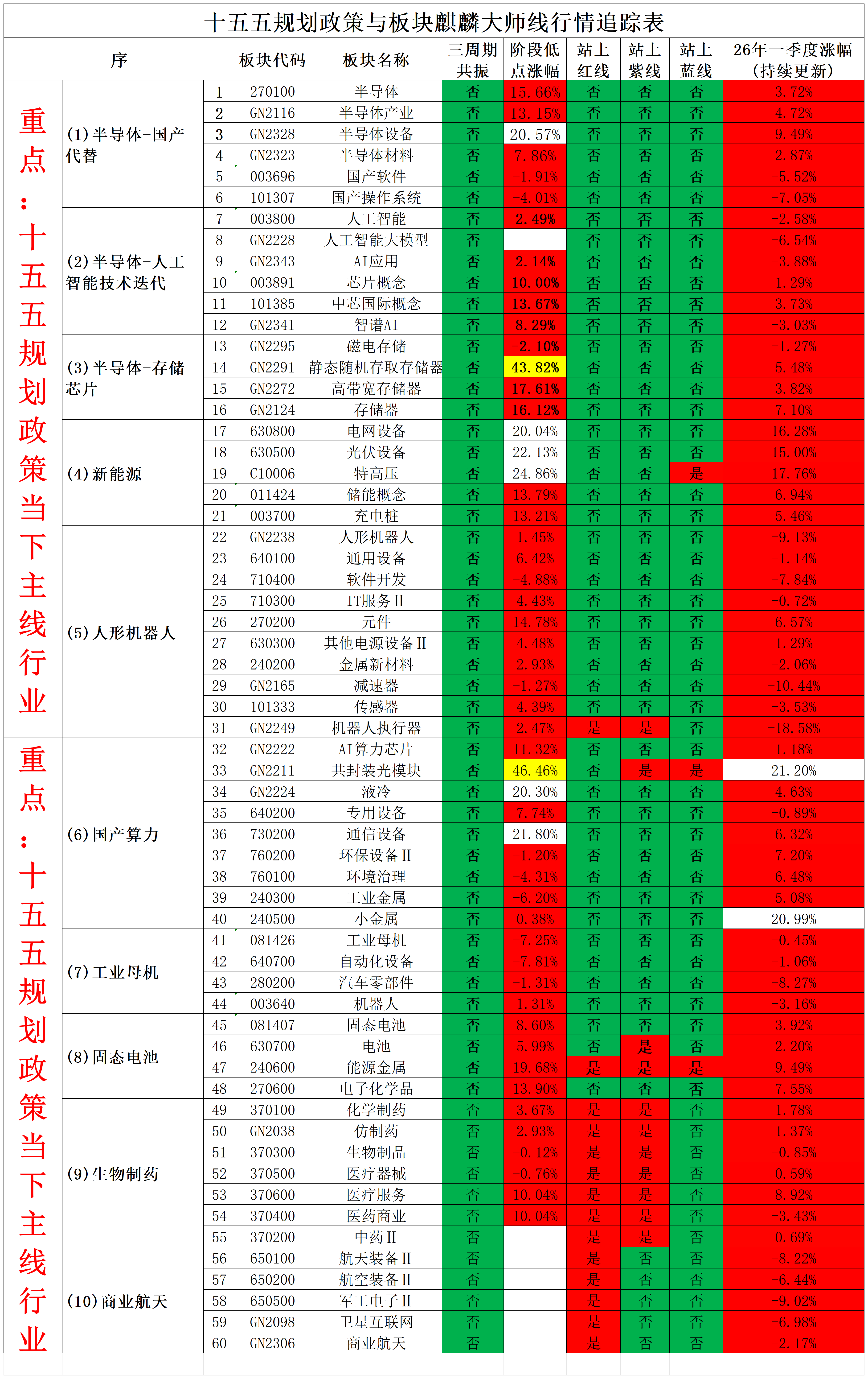 2026年3月31日十五五规划政策与板块麒麟大师线行情追踪表