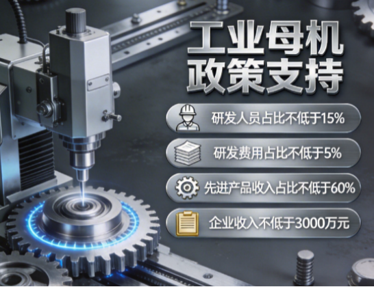 四部门发布《关于2025年度享受研发费用加计扣除政策的工业母机企业清单制定工作有关事项的通知》,明确适用加计扣除政策的工业母机企业需同时满足四大核心条件:一是主营先进工业母机主机、关键功能部件、数控系统的生产销售;二是先进工业母机产品研发人员月平均占比不低于15%;三是年度研发费用总额占营业收入总额比例不低于5%;四是先进工业母机产品收入占比不低于60%,且企业收入总额不低于3000万元。政策精准扶持高端装备制造核心环节,推动工业母机行业技术研发与高端化升级。