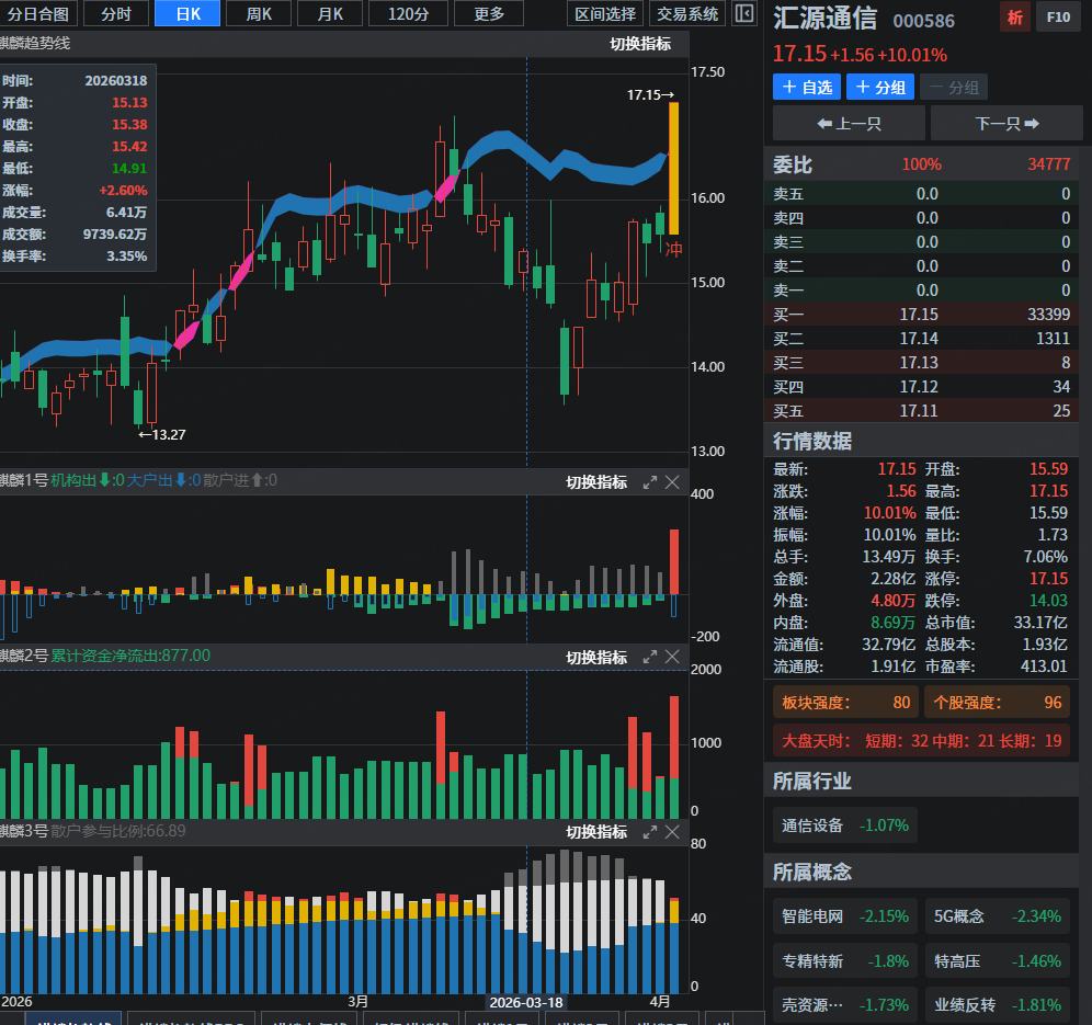 受海外技术突破消息刺激(英国科学家创下商用光纤速度新纪录),光纤概念股今日逆势爆发。该股作为板块热门标的录得涨停,与行业供需改善预期共同推动。