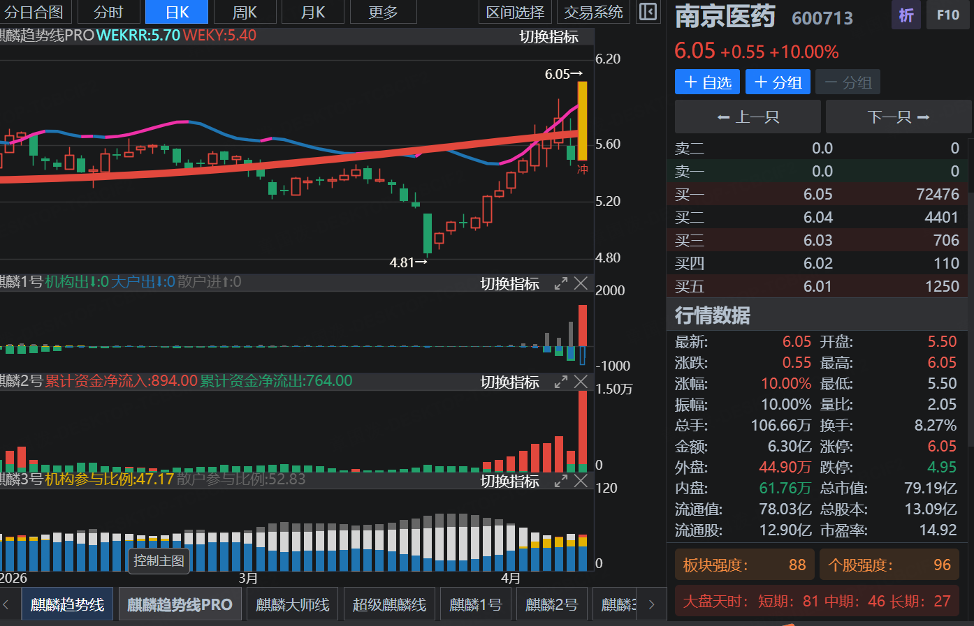 2、盘后策略内参需要进行盘中确认,算法要满足条件,股票也需要在【主图麒麟趋势线PRO+麒麟1号+2号+3号】体系之内,并符合战法规则!