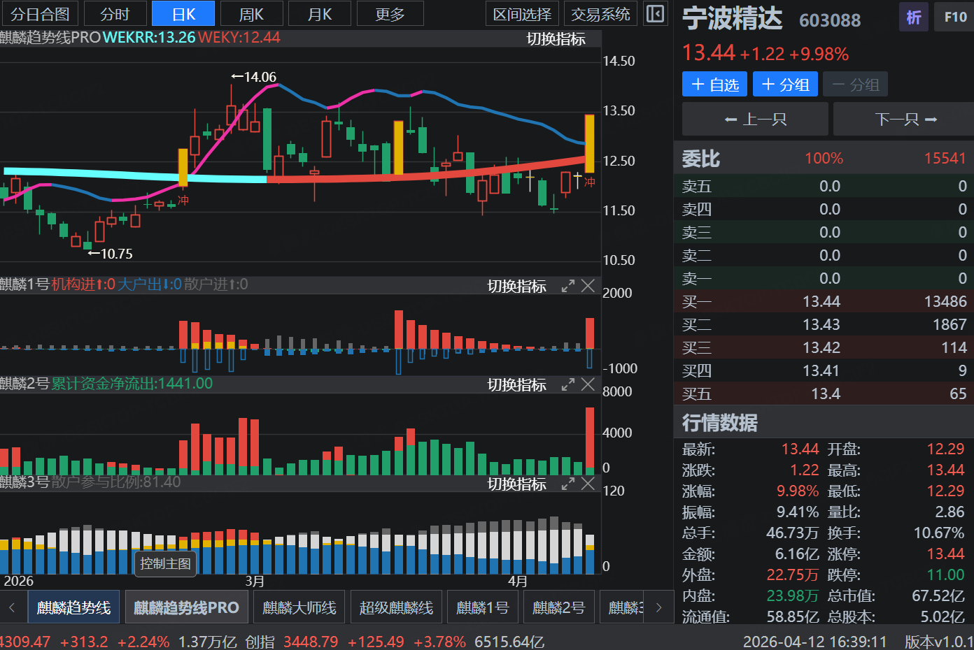 其中目前走势实现形成日月共穿向上,结合我们五绝一买战法要求,麒麟指标1号2号主力控盘 ,得到市场资金的认同;3号显示机构持仓比例增加。盘后预选内参案例作为教学分享演练,不做直接推荐,同时新手建议学习为主。