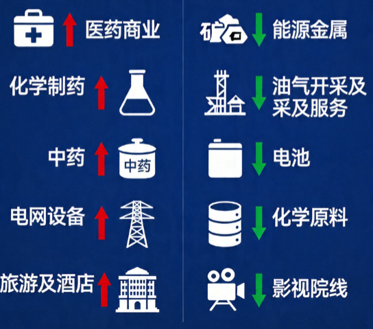 • 净流入靠前板块:医药商业、化学制药、中药、电网设备、旅游及酒店;