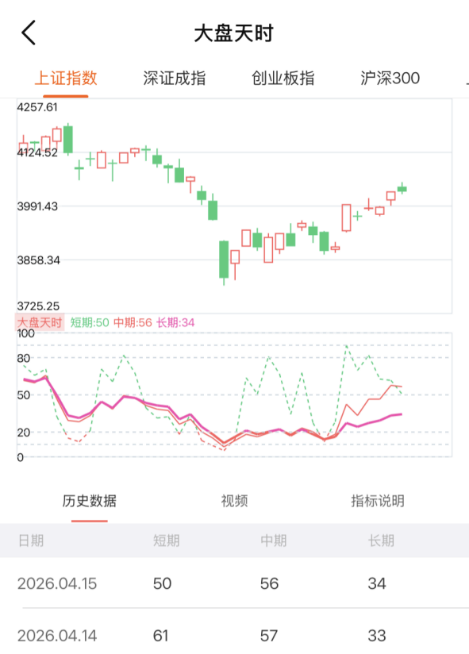 从天时指标来看,今天三大情绪指标呈现分化格局。短期指标:从61回落至50,短期情绪明显降温,市场进入震荡整固阶段;中期指标:从57微降至56,说明中期向好的趋势没有发生逆转,不用过度恐慌;长期指标:从33稳步抬升至34,长期趋势延续稳步向好的态势,市场中长期底部支撑持续夯实。