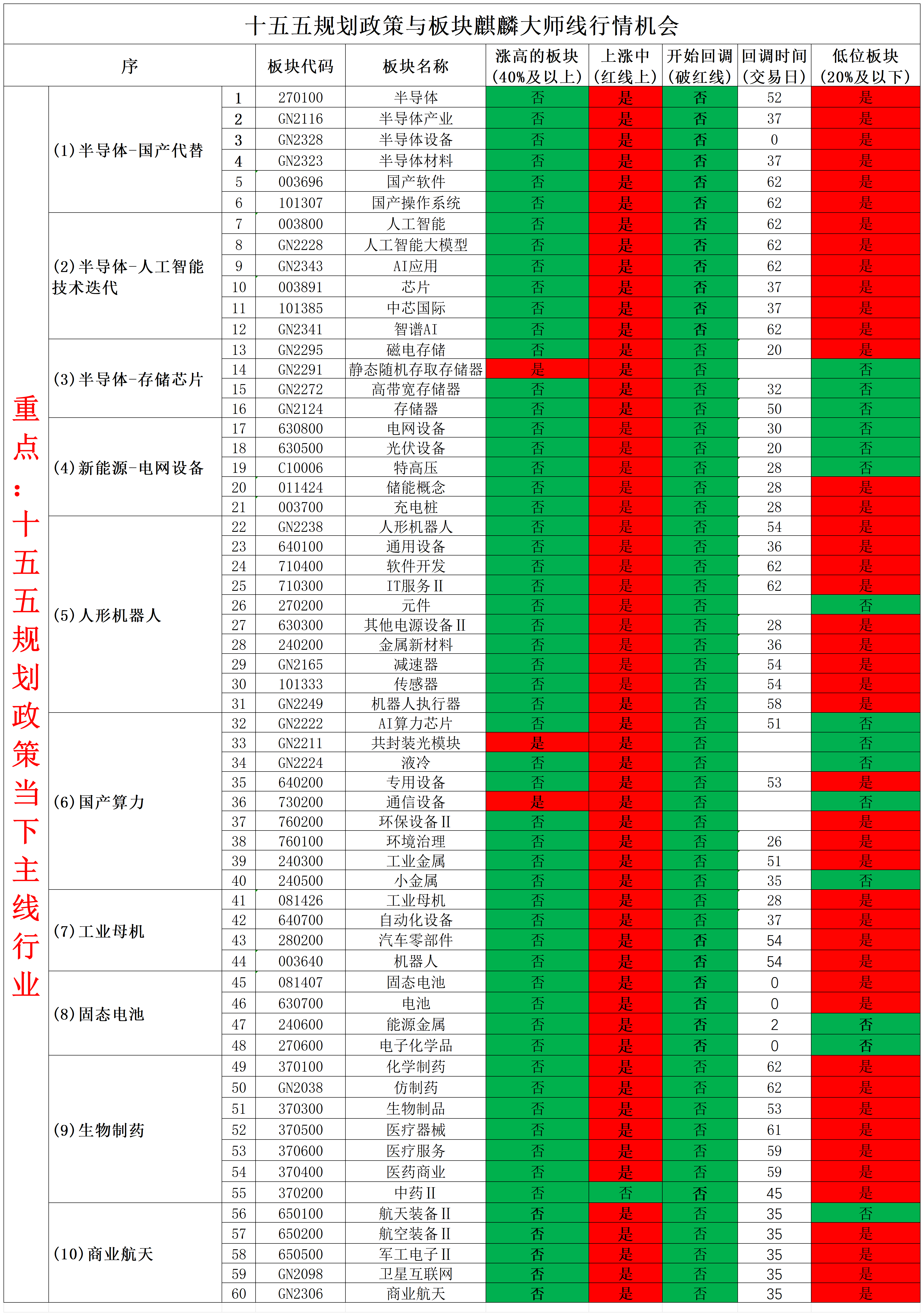 分类说明: 此类板块已跌破红线,进入回调阶段