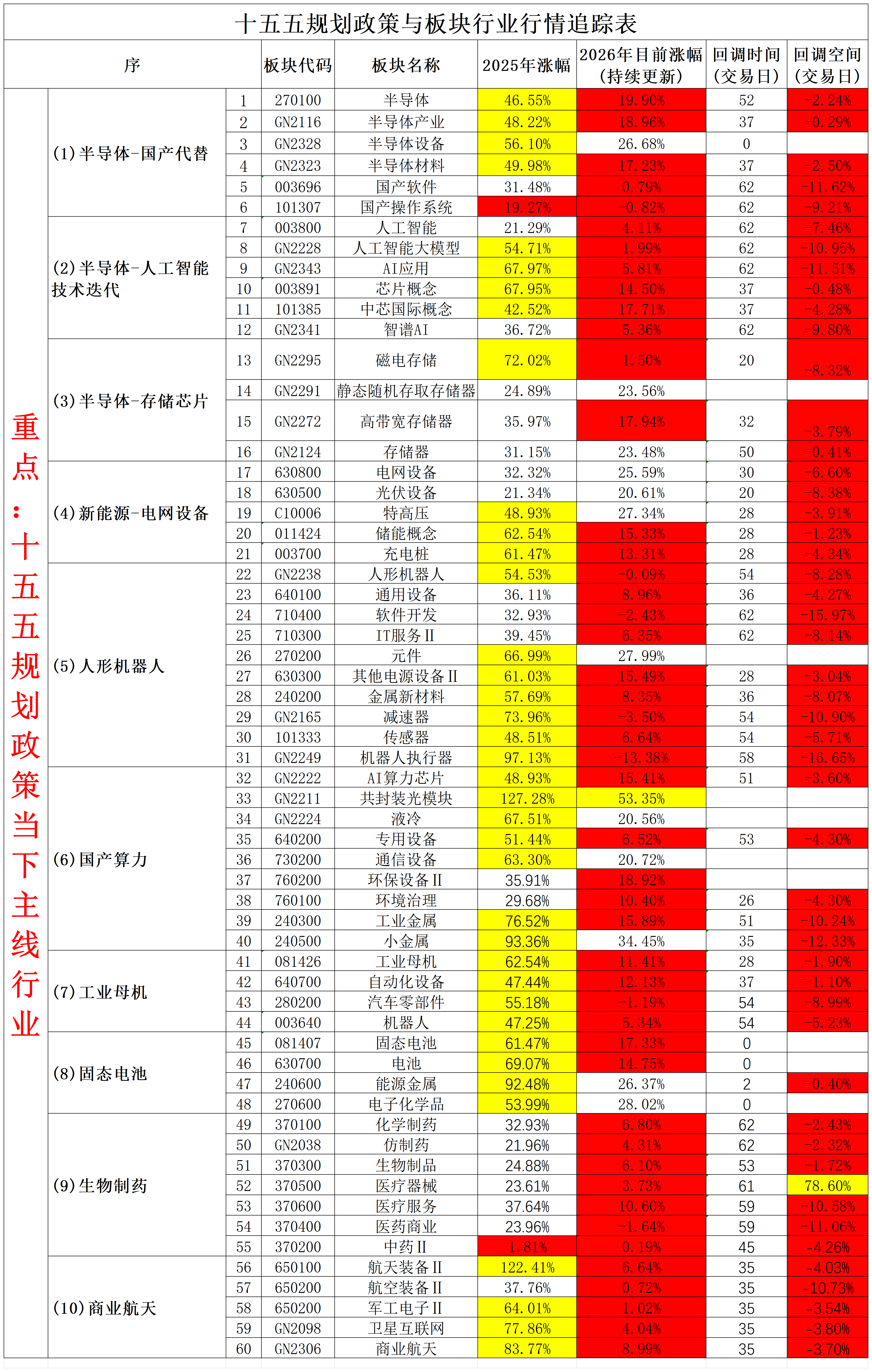2026年4月20日十五五规划政策与板块行业行情追踪表