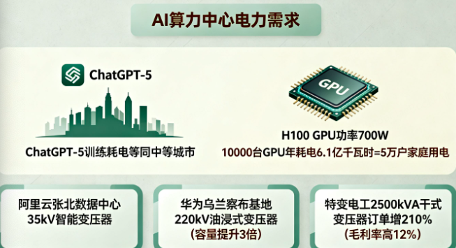 AI算力中心的特殊需求正在改写电力设备的技术标准。与传统工业用电相比,AI数据中心对供电系统提出三大新要求:毫秒级响应的负荷调节能力、99.999%的供电可靠性、智能化的能源管理系统。这使得具备"节能+智能+高可靠性"特征的产品成为市场新宠。
