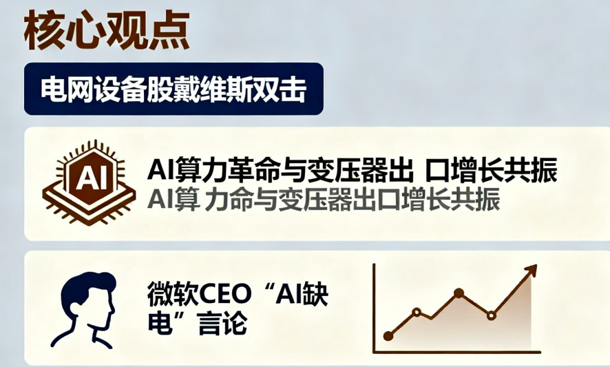 电网设备板块近期的强势表现,本质上是AI算力革命催生的电力设备增量需求与变压器出口超预期增长形成的共振效应。微软CEO纳德拉关于"AI行业缺电而非缺算力"的言论,点燃了市场对电力设备升级的想象空间。