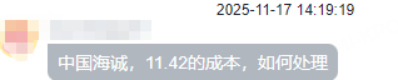 2025/11/17 17:44:59最近和学员聊天,发现大家问得最多的就是 “手里的股票该怎么处理”。比如有个学员问,中国海诚成本 11.42 元,现在该卖还是该留?
