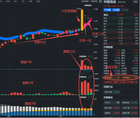 根据以上麒麟趋势走势图可知,中国海诚股价经过一段时间的充分调整后。
