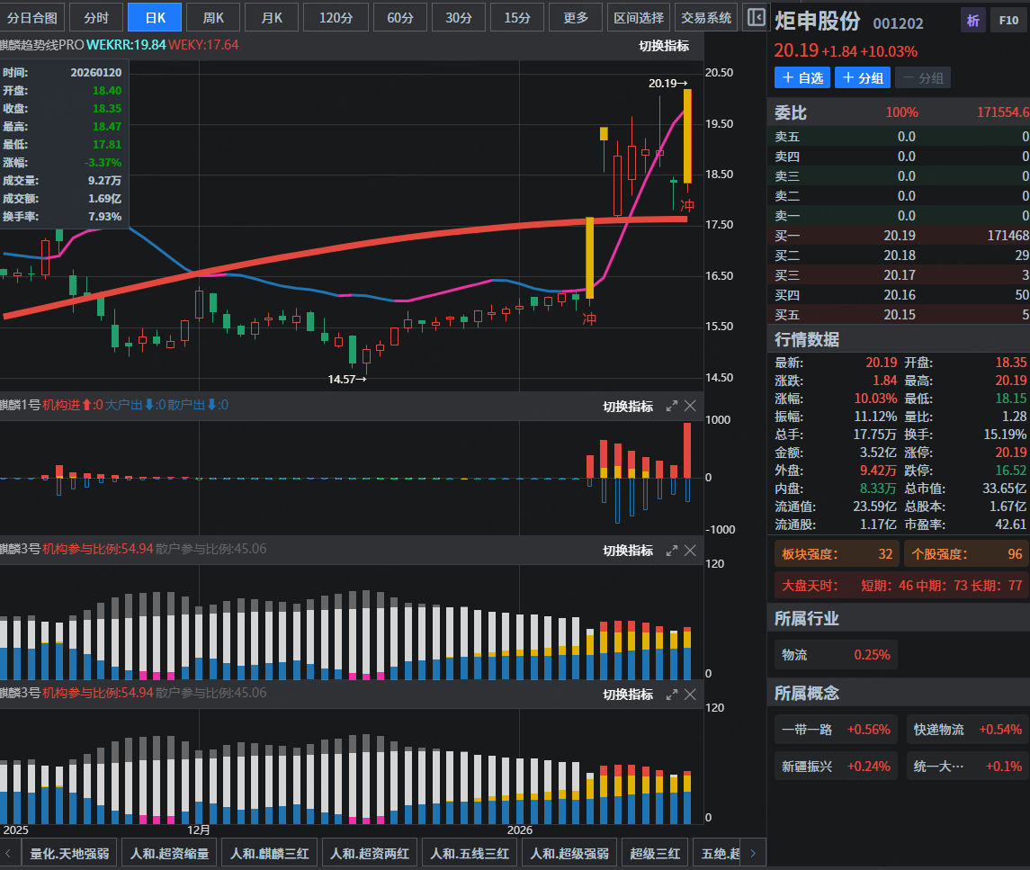 其中目前走势实现形成日月共穿向上,结合我们五绝一买战法要求,麒麟指标1号2号主力控盘 ,得到市场资金的认同;3号显示机构持仓比例增加。盘后预选内参案例作为教学分享演练,不做直接推荐,同时新手建议学习为主。