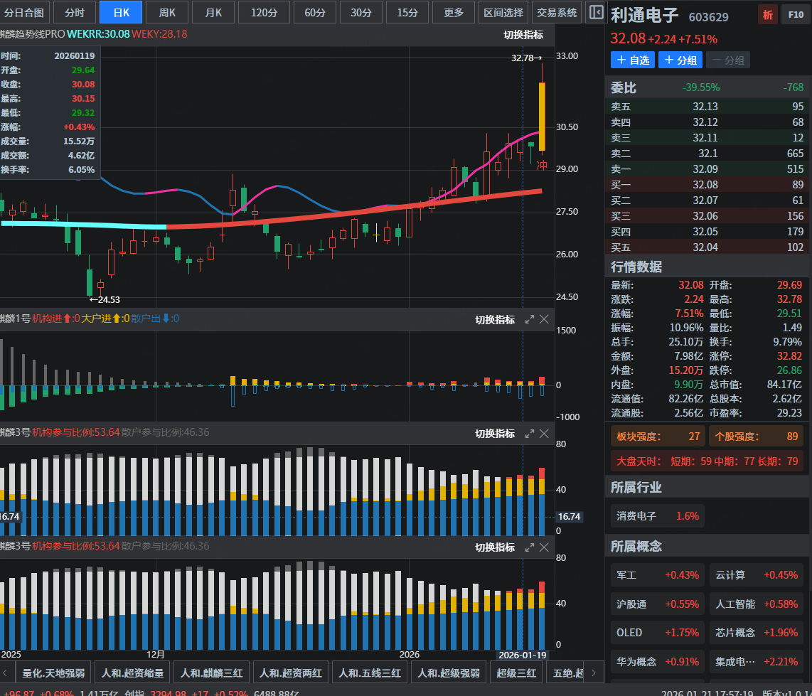 这是最直接的推动力。今日元器件板块表现活跃,多只个股涨停或大幅上涨。利通电子作为板块内公司,也受到了资金关注和市场情绪的带动,出现在多家财经媒体的板块领涨股名单中。